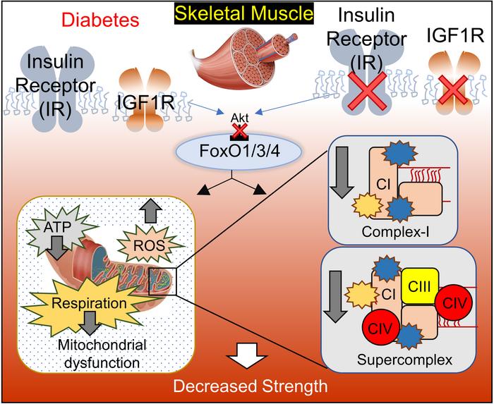 Bhardwaj G, Penniman CM, Jena J, Suarez Beltran PA, Foster C, Poro K, Junck TL, Hinton AO Jr, Souvenir R, Fuqua JD, Morales PE, Bravo-Sagua R, Sivitz WI, Lira VA, Abel ED, O’Neill BT. Insulin and IGF-1 receptors regulate complex I-dependent mitochondrial bioenergetics and supercomplexes via FoxOs in muscle. J Clin Invest. 2021 Sep 15;131(18):e146415. doi: 10.1172/JCI146415. PMID: 34343133; PMCID: PMC8439595.