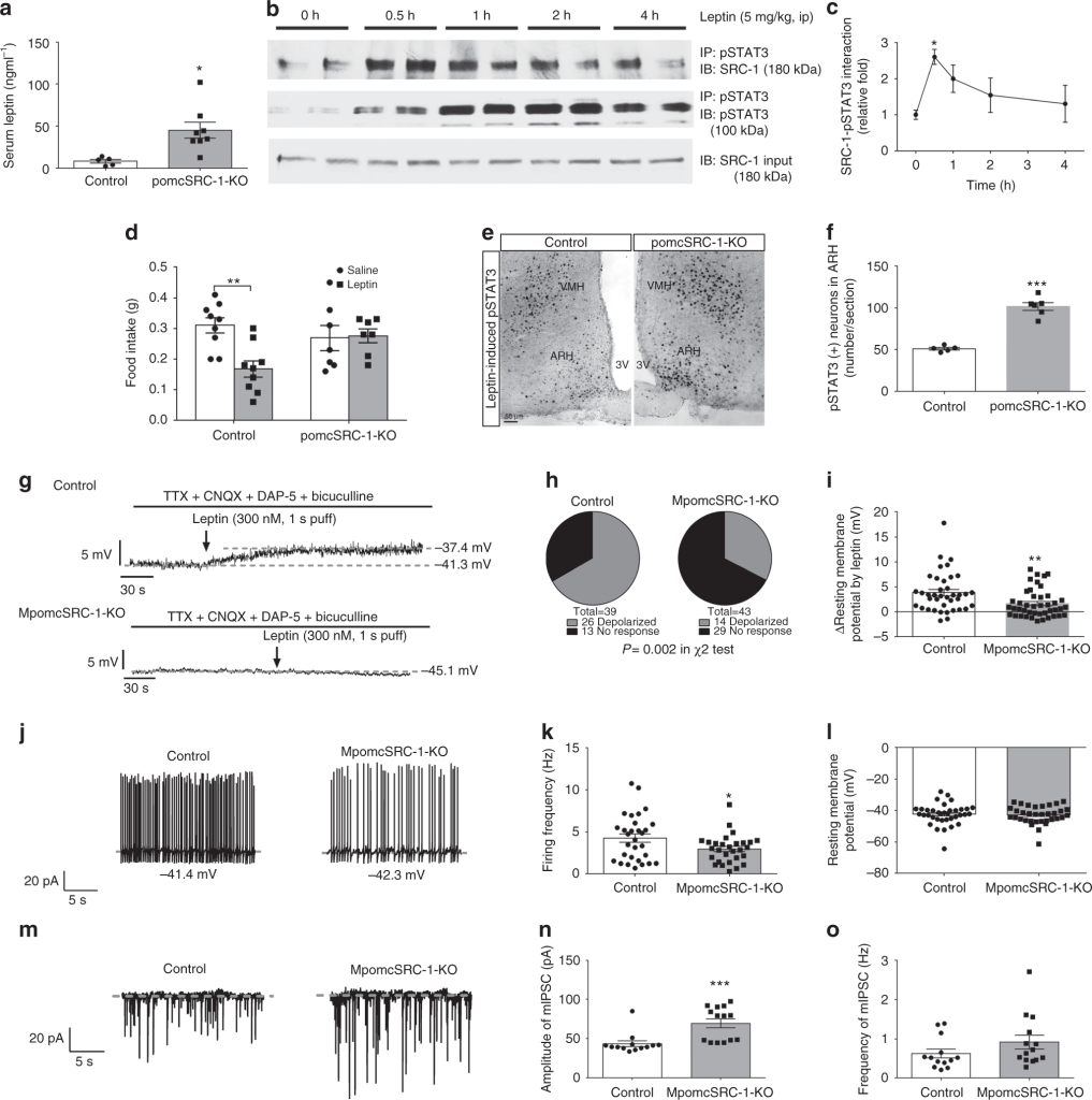 7. Yang, Y., van der Klaauw, A. A., Zhu, L., Cacciottolo, T. M., He, Y., Stadler, L., Wang, C., Xu, P., Saito, K., Hinton, A., Jr, Yan, X., Keogh, J. M., Henning, E., Banton, M. C., Hendricks, A. E., Bochukova, E. G., Mistry, V., Lawler, K. L., Liao, L., Xu, J., … Xu, Y. (2019). Steroid receptor coactivator-1 modulates the function of Pomc neurons and energy homeostasis. Nature communications, 10(1), 1718. https://doi.org/10.1038/s41467-019-08737-6